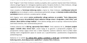 ZAPISNIK s radionice KUD-a Prigorec s temom „Metodologija istraživanja arhivske građe“, unutar ciklusa radionica „Očuvanje kulturne baštine“